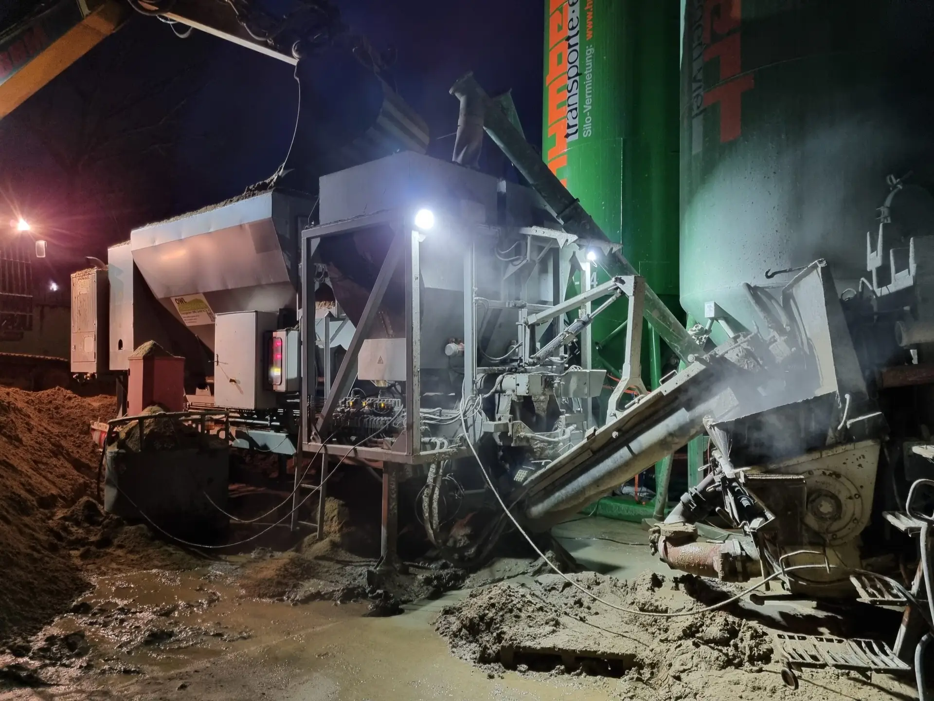 Wir beschleunigen Ihren Bauablauf durch die Produktion des Flüssigbodens mit einer Geschwindigkeit von bis zu 100m³ pro Stunde.