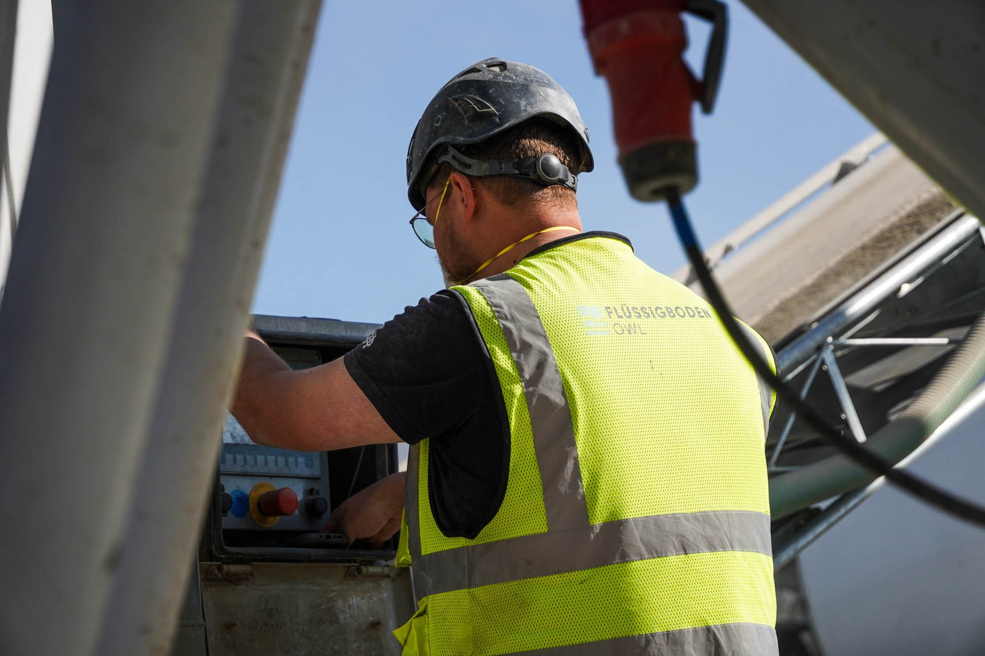 Wir bauen für Sie den Flüssigboden, auch bei schwierigsten Baustellen mit unserem geschulten Personal ein.